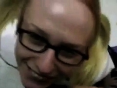 Buck teeth schoolgirl in glasses begs for facial, eats cum.