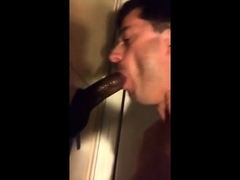 Gloryhole homemade gaydaddy sucking black dong in closeup