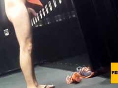 Caught getting hard on in locker room – boner spy, big dick
