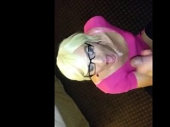 Cute dark blonde girl sucks dick and gags on older guys cum